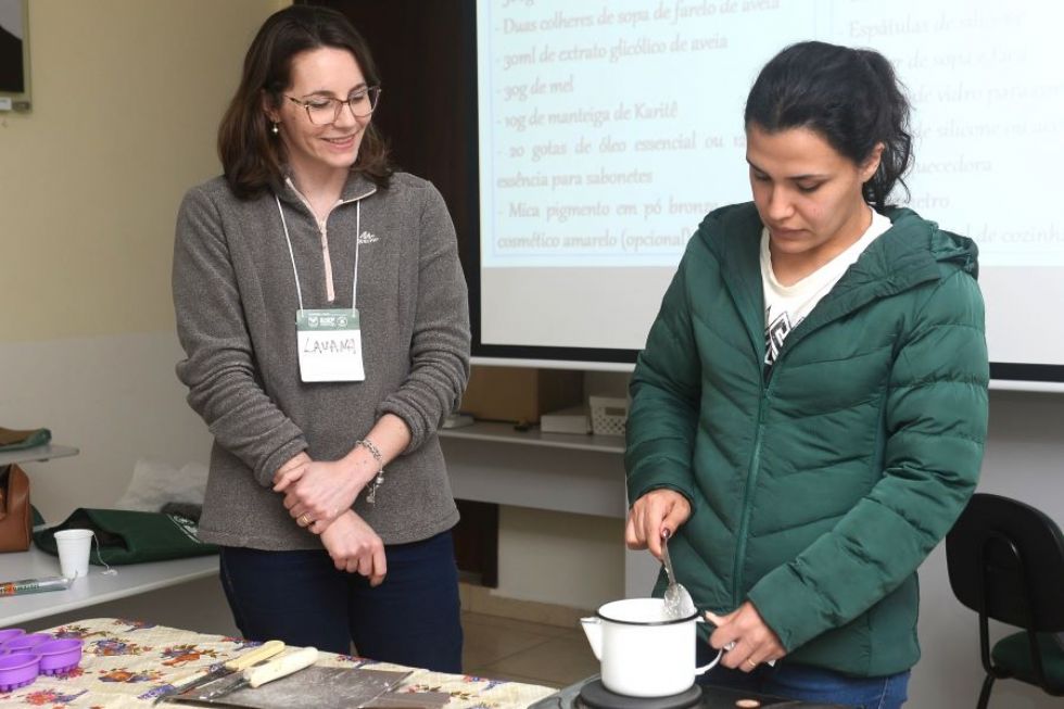 Na manhã de hoje, 28, o foco foi a preparação de sabonetes. O curso termina amanhã.